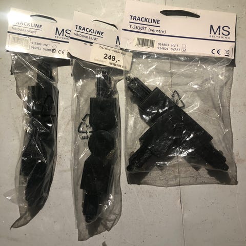 MS Belysning Trackline Conic. Komplett skinnepakke (1 meter) med 3 spotter. Skinnesystemet kan bygges ut etter eget ønske med skjøter og vinkler. Pent brukt i gang. Gir godt og behagelig lys.