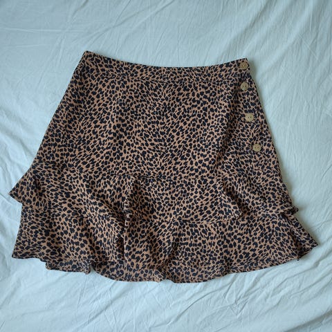 Oasis Cordfløyel skjørt i størrelse 36/38, farge burgunder/lilla. Skjørtet har knappelukking og lommer med knappdetaljer foran. Laget av cordfløyel.