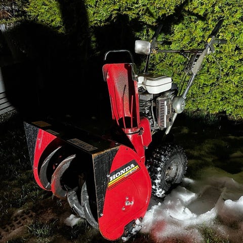 Snøfreser chassis, freserhus i bra stand, drivverk ser ok ut. Motor er donert til en ariens. Meec, AL-KO...