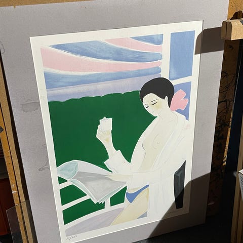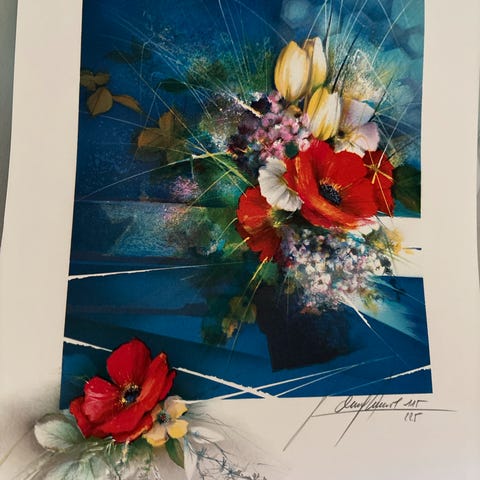Selger et littografi, signert og nummerert av kunstner, nydelige blåfarger, innrammet hos Galleri Grimstad AS. Størrelse rammemål 52x40, motivmål 36x26. Kan pakkes godt og sendes på kjøpers bekostning.