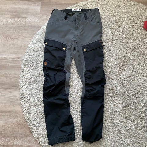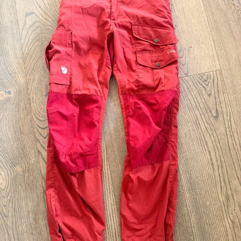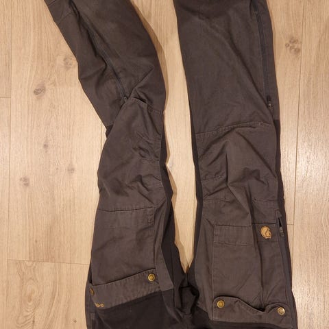 Fjällräven bukser i grå farge, størrelse 40 for dame. Jeg har sydd dem inn for å passe meg i livet, så ville si at de nå passer best for en str 38. Selges derfor litt billigere. Ellers lite brukt, og i god stand.