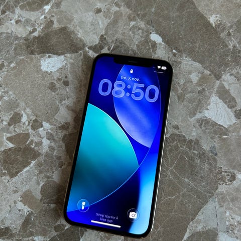 Apple iPhone 12 med 64 GB lagringskapasitet. 87 % batterikapasitet