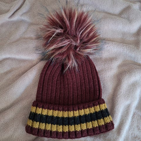 Warm vinterlue i grå farge, Luen har pelsdetaljer og knyttbare snorer med dusk, designet for å gi ekstra varme og beskyttelse.