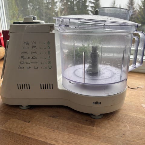 Pent brukt og solid elektrisk juicepresse, Braun 4290. Dette er en kompakt maskin som er kjent for å være svært driftssikker og enkel i bruk. Kompakt størrelse som tar liten plass på kjøkkenbenken.