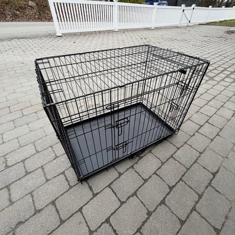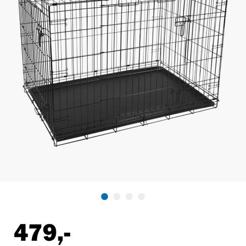 Selger hundebur fra Biltema, nypris 479 kr. Buret er sammenleggbart, og kommer med underlag. Lengde er 77 cm, bredde 49, høyde 55. Må hentes.