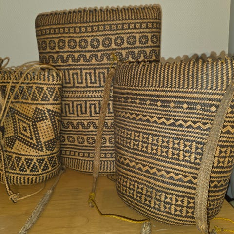 Autentisk Dayak seremonielt bære-/vuggekurv – Borneo, ca. 1950