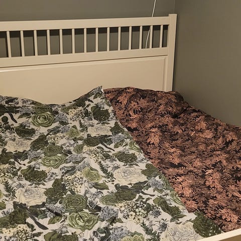 IKEA seng med hvit madrass. Sengen har enkel design med svart ramme og en hvit madrass. Passer for enkeltsengbruk. Dette er nok en IKEA eller jysk modell. (Usikker) ben under rammemadrass som er brun og hvit overmadrass. Overmadrass er bra, rammemadrass har trolig noen brutte fjører