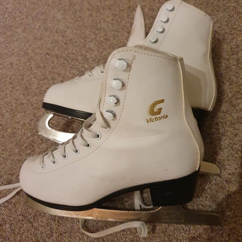 Brukt skøyter og har synlig bruksmerker på de, men kan fortsatt brukes. Str35cm