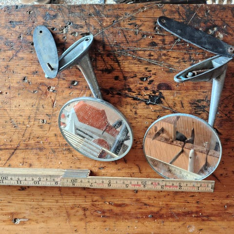 Hoyre speil i brun farge. Dekselet kan enkelt byttes til svart hvis man trenger det.