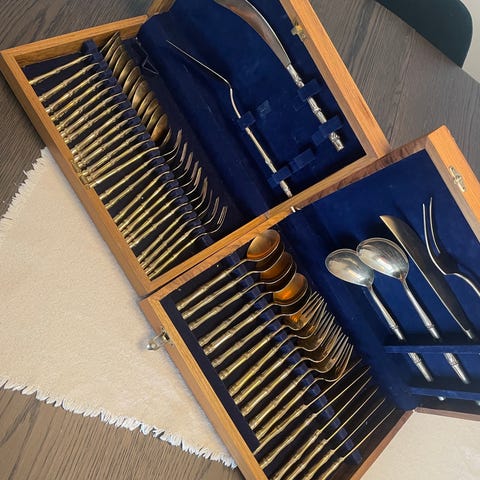 Bestikker kommer i en utrolig fin koffert laget av teak.
