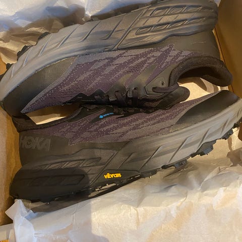 Svært lite brukt, i eske. Ble kjøpt til min sønn som vokste fra dem før de ble tatt ordentlig i bruk. Har samme selv, utrolig luftige og deilige sko. Nypris 1500