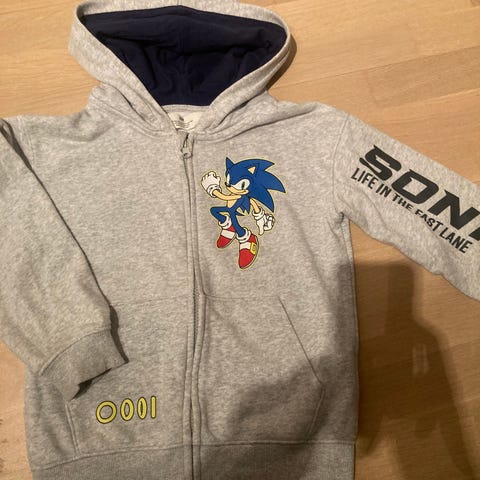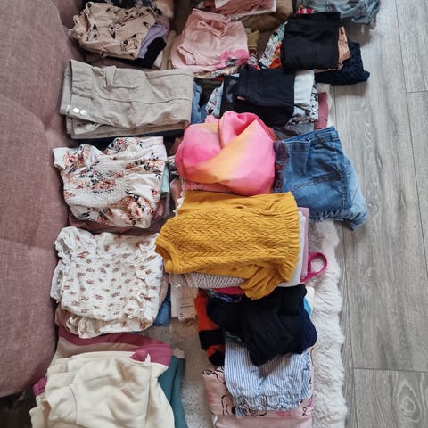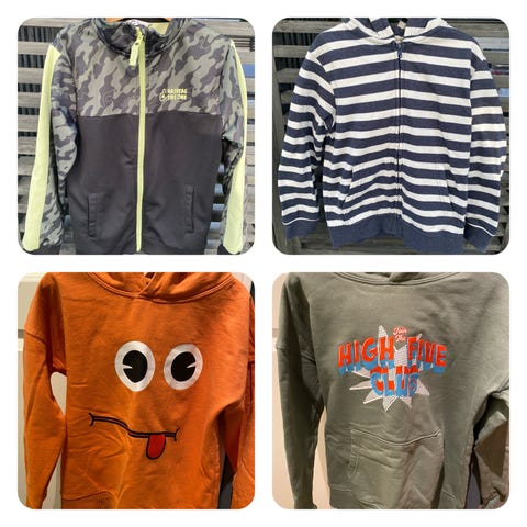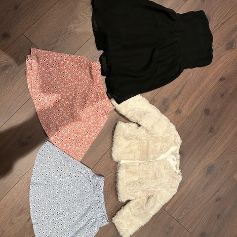 En genser i 122/128, en tynn genser i 134/140 og 5 t-skjorter i 122/128