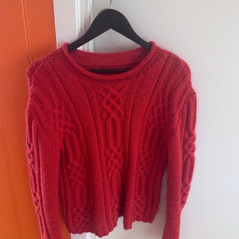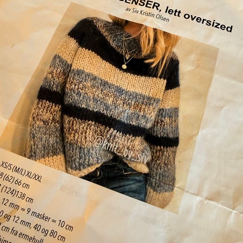 Genseren er strikket i str XXL er myk og godt, klør ikke. Jeg strikket den i for stor str til meg så den er ikke brukt.