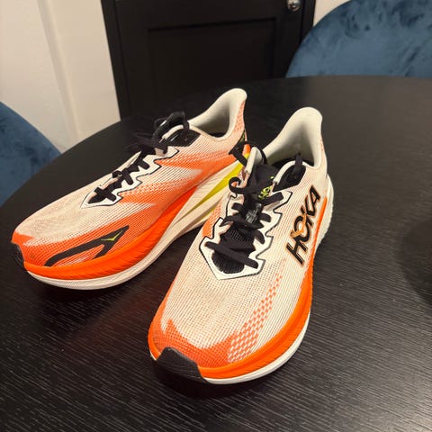 Pent brukte Hoka Cielo 2. Gode konkurransesko, men passet ikke min fot, ble for små. Brukt på bane og grus.