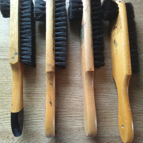 Vintage Aanonsen skokremskap i metall med 3 rom for oppbevaring av skopuss