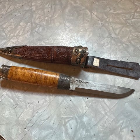 To kniver Den sorte er laget av Ragnar Johannesen Sølvkniven er av Tore Noddeland Ønsker bud