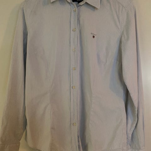 GANT Classic Blue skjorte for kvinner i størrelse 34. Skjorten har et stripete mønster i blått og hvitt, med lange ermer og knappelukking foran. Materialet er ikke spesifisert, men skjorten har en klassisk passform og mansjetter med knapper.