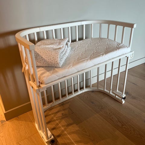 Veldig pent/lite brukt bedside crib fra Babybay. Kjøpt hos Luksusbaby mai 2025. Siden vi i hovedsak har endt opp med samsoving, så har senga fungert mer som et sengegjerde.