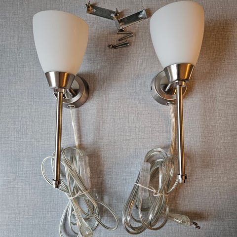 2 pent vegglamper-300kr. 1(L) pent vegglamper-50kr(det er ingen skruer for å feste glasset)