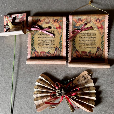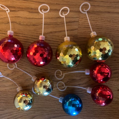 Julepynt /julekuler i stoff med bånd - fra 80-tallet