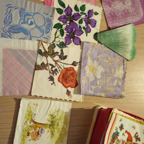 Selger min samling med servietter fra 70- og 80-tallet. Uvisst hvor mange servietter.