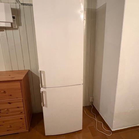 Kan hentes nå denne helgen, kjøleskapet står på nå.