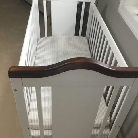 Sengen har stått på vårt soverom og kun blitt sovet i en håndfull ganger da mini har foretrukket vår seng😅