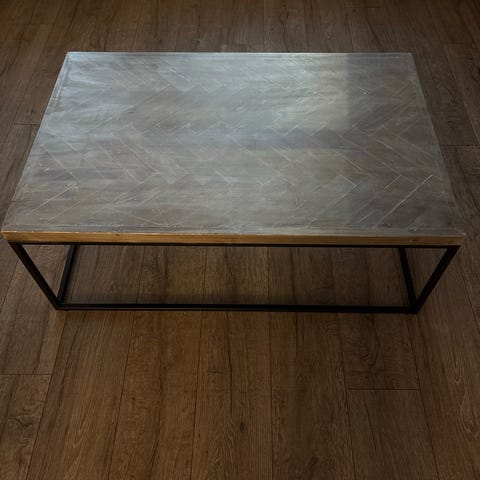 Selger et pent brukt stuebord. Noen bruksmerker her og der.