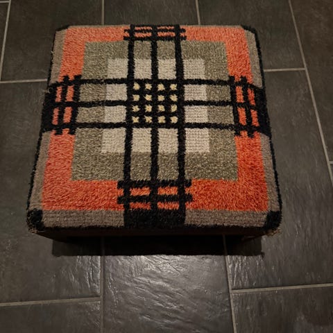 Krakk fra 60-tallet selges. Krakken har to høydemuligheter (33 og 43 cm). Mål ellers 42 x 42 cm. Originalstoff som er noe slitt (se bilder).