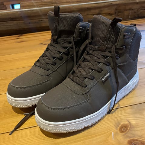 Brukt en sesong. Vanntette. Litt slitt bak på den ene hæla, ellers lite slitasje