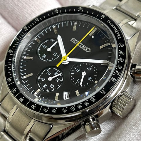 Original reim ble veldig slitt, kjøpt ekstra mesh lenke og Original Seiko silikon reim. ( følger med kjøp) er litt hairlines på spenne som hører til silikon reima. Leveres med mesh lenke på. Klokken er strøken, men har fått en ripe på bezel. ( se eget bilde )