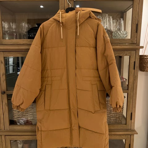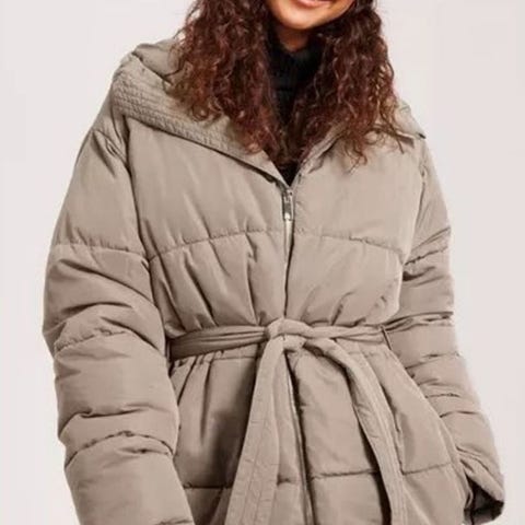 Lea Lauryl vinterjakke i brun/beige farge, størrelse 38. Jakken har for med pelsdetaljer og belte i livet. Ytterstoffet er laget av tekstil (bomull), og innerjakken har for laget av ekte pels (fourrure). For kan tas av. Passer til bruk som ytterplagg i kaldt vær. Kjøpt i Paris.