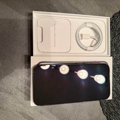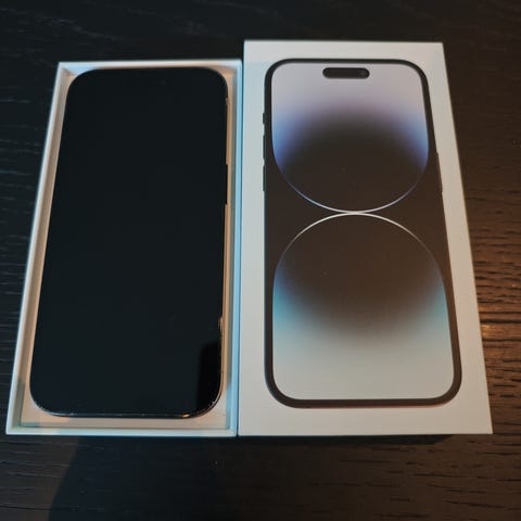 Selger min Apple iPhone 14 Pro med 128 GB lagring. Midnatt blå.