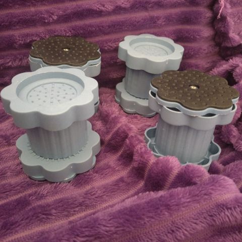 Standard gummiføtter fra butikk er ofte for lave og ustabile. Jeg tilbyr spesialdesignede, 3D-printede forhøyningsklosser (HeavyDuty) som løfter maskinen din hele 6 cm fra gulvet.