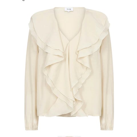 Offwhite/kremfarget to-delt joggedress fra Levete Room, hette og splitt i sidene på toppen, str L (se mål bilder), kan ikke se noen flekker eller hull. Kjøpt på Suser i Sivet. Første bilde lånt fra nettet.