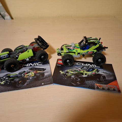 LEGO Technic bilbyggesett i svart farge. Inneholder detaljerte deler for konstruksjon av bilmodellen, med mekaniske funksjoner. Egnet for bygging og samling.