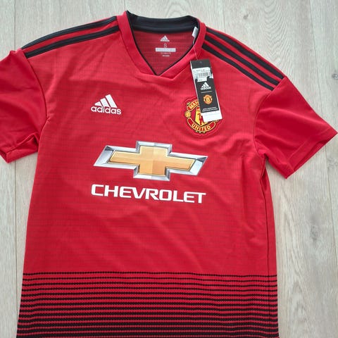 Adidas Manchester United fotballtrøye i størrelse M. Trøyen er svart med gule og svarte detaljer. Drakten er i str M. Selges fordi ble kjøpt feil størrelse.