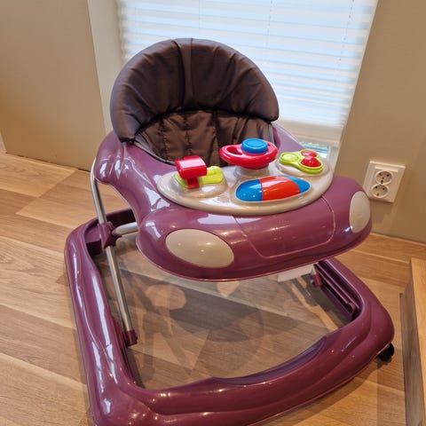 Pent brukt gåstol selges. Kan justeres etter høyde på babyen. Kommer med mye spennende lyder for den lille, ikke fullt så morsomme lyder for oss voksne. Lydnivået er heldigvis ikke så høyt!