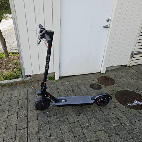 Har noen bruks merker lekker luft av bak hjulet den har 1000w og max watt er 1600w den er veldig kraftig og tar deg opp alle bakker lett og god og kjøre og har en range på 90 kilometer. Har ikke noen feil eller problemer. Trades kan vurderes.
