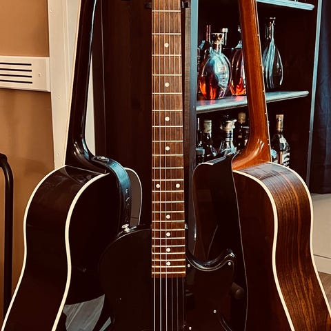 Kanskje verdens kuleste no bullshit rockegitar. Dessverre intonerer den ikke særlig bra, så her må nut eller bridge sees over/byttes, iallefall må den få et skikkelig oppsett.