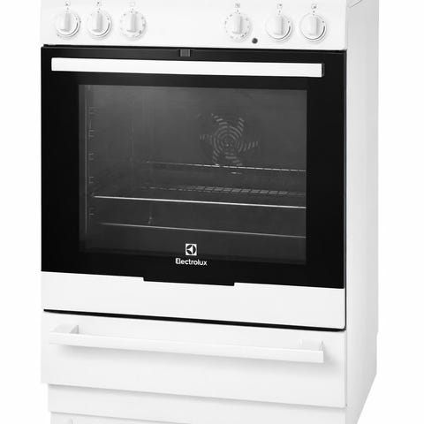 Gorenje keramisk komfyr med ovnsdør i rustfritt stål og glass. Komfyren har kontrollknapper for innstilling av varme og funksjoner. Egnet for matlaging med keramisk kokeplate.