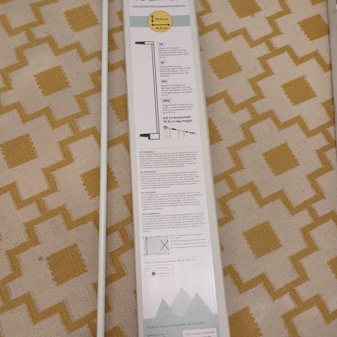 Kjøpte denne på Finn, men den passer ikke hos oss. Justerbar bredde som passer til ulike åpninger. Enkel å montere og bruke.