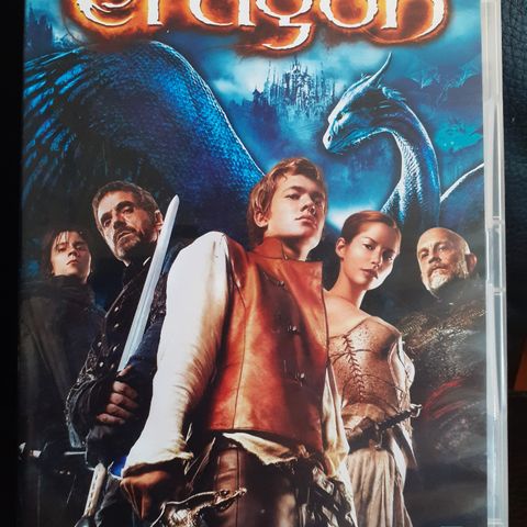 Eragon Blu-ray film med høy definisjon og DTS-lyd. Inkluderer spesialfunksjoner som bak kulissene, slettede scener, og kommentarspor. Filmen er basert på fantasy-tema.