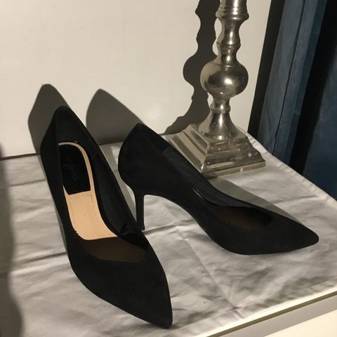 Sorte semsket sko med unike hæler i størrelse 39.