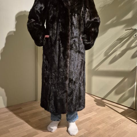 Selger min minkpels, arvet fra mamma. Fremstår ubrukt. Jeg er 166cm høy og bruker vanligvis str S, denne synes jeg fremstår som str M.