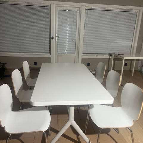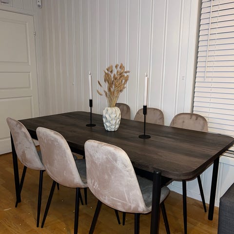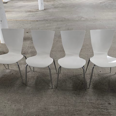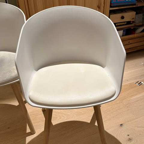 2 stoler med og 2 uten ryggvange må hentes snarest. Noe bruksmerker samt at understoff er gått i oppløsning.