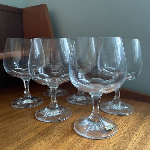 Nydelig krystallglass med fargerik dekorasjon.