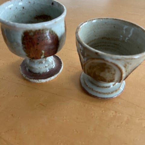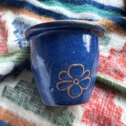 Ukjent merke keramiske blomsterpotter oransje dekor 2 stk