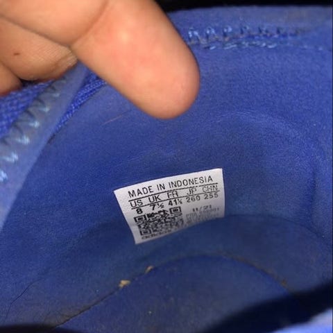 Adidas fotballsko i størrelse 41, med blå og oransje farger.
