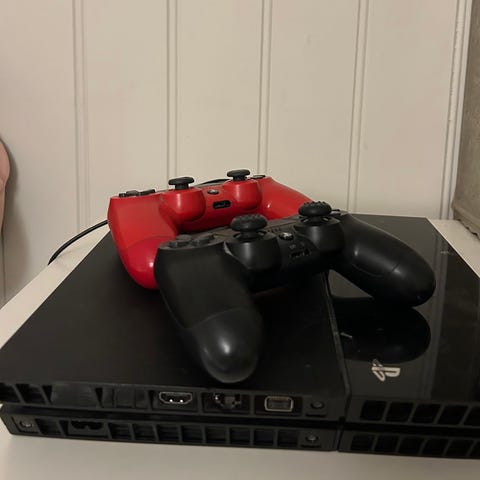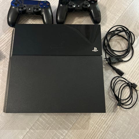 Sony Playstation 4 spillkonsoll med kontroller og kabler